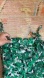 mid length emerald green floral dress, thin tie straps, and cinched back to tighten or loosen, and concealed zipper.