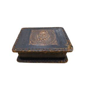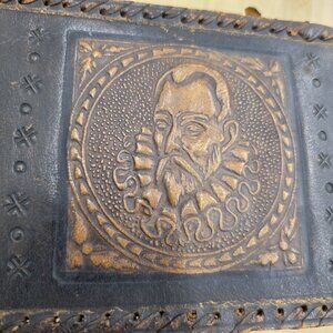 miguel de cervantes Of Spain Antique Vintage Handma Leather Embossed Trinket Box
