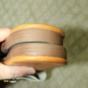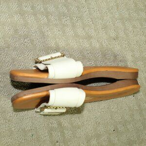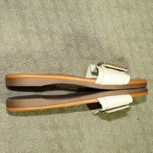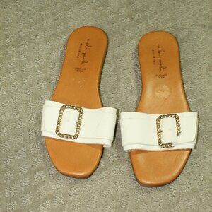 mila paoli Women's 9 While Leather Gold Buckle Slide Sandal