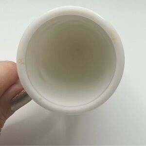 milk glass mug on pedestal green toile design demitasse by Avon cup with handle