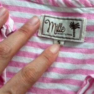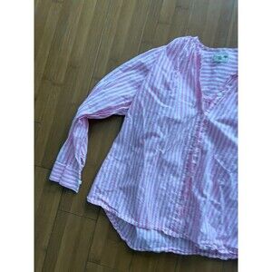 mille resort pink white top button down striped boxy women's small