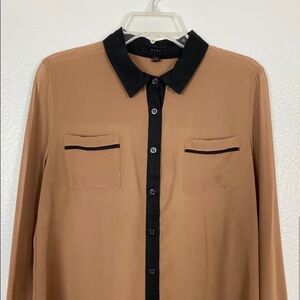 Brown Semi Sheer Button down Shirt Black collar neck and trim