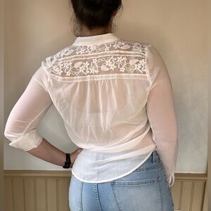 mine Sheer Embroidered Blouse Bridal Honeymoon Lace Front Tie Detail Womens Sz L