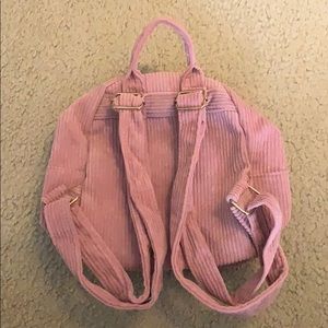 BRAND NEW cute pink corduroy mini backpack in perfect condition. About 8” tall 7” wide and 3” wide on bottom. Has mini pocket in front and two pockets inside the main one.