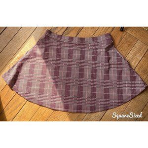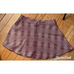 Juniors size XL purple/burgundy/pink plaid mini skirt. There's a circle zipper pull closure in the back. This item is in excellent pre owned condition.