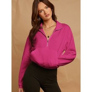 🌟 minimalist Drop Shoulder Zip Half Placket Sweatshirt