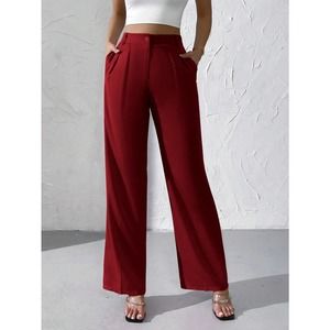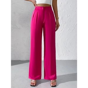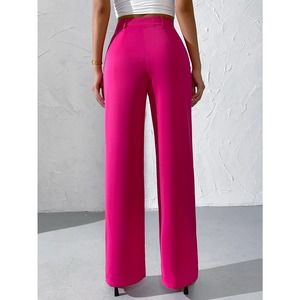 minimalist High Waist Plicated Detail Wide Leg pants black