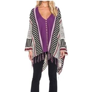 MINKPINK Revolve Tribe Wars Gray and Fuchsia Knit Poncho One Size Fits Most