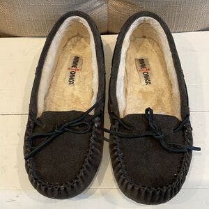 Sz 9. Great used Condition No visible flaws. Moccasin faux fur Slippers. Little linty.