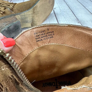 minnetonka brown leather fringe booties sz 7 western boho ankle boots
