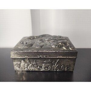 This is a Great antique Japanese antimony metal stash/cigarette box, with hinged lid, dating back to 1920s-1930s - Taisho or early Showa period.