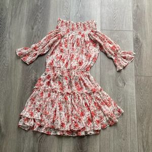 misa los angeles darla floral poppy off the shoulder ruffle mini dress small