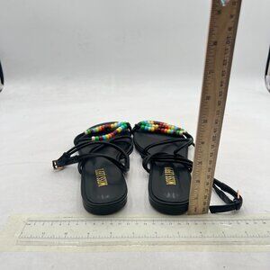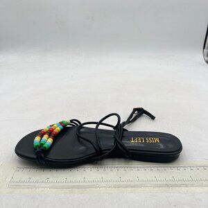 miss left Black Beaded Flat Ankle Strap Open Toe Lace up Beach Slide Sandals