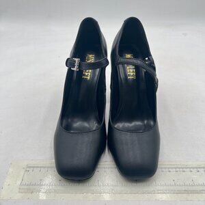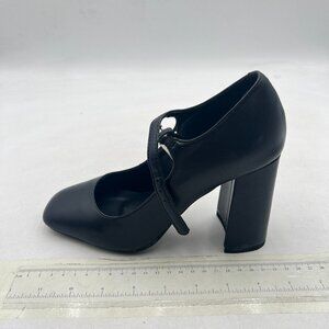miss left Black Cute Mary Janes Square Toe Block High Heel Pump Ankle Strap Shoe