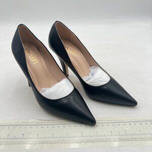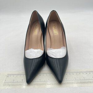 miss left Black Pointed Toe Pumps Slip On Solid Low Cone Heels Versatile Dressy Office Party Date Shoes