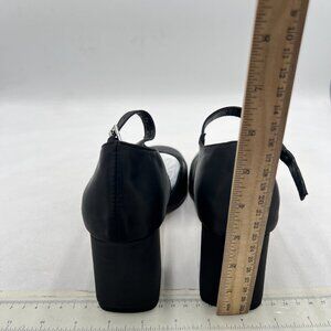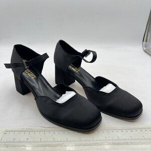 miss left Black Satin Square Toe Adjustable Ankle Buckle D'Orsay Pumps