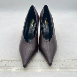 miss left Brown Classic V-Cut Pointed Toe Pumps Slip On High Heel Elegant Shoes