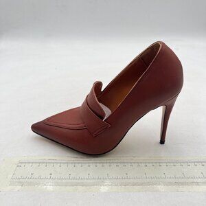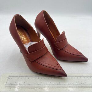 miss left Brown High Heel Loafer Pumps with Trim Pointed Toe Slip on Dress Shoe