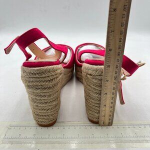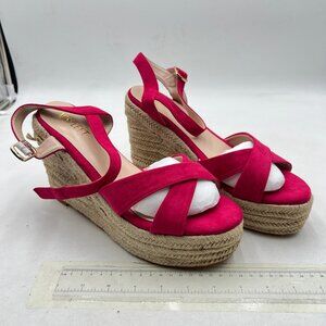 miss left Fuchsia Platform Round Toe Cross Strappy Espadrille Wedge Heel Sandal