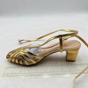 miss left Gold Caged Toe Chunky Heel Cutout Strappy Ankle Strap Buckle Sandals