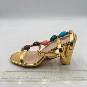 miss left Gold Gorgeous T-Strap Buckled Jewelled Gladiator Sandals Open Toe Shoe