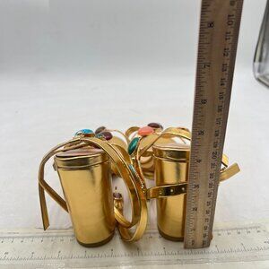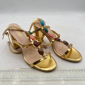 miss left Gold Gorgeous T-Strap Buckled Jewelled Gladiator Sandals Open Toe Chunky High Heel Chic Party Prom Event Shoes