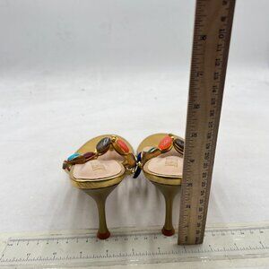 miss left Gold Jewelled Open Toe Flip Flops Sexy High Heel Slip on Thong Sandals