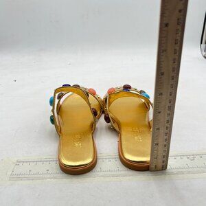 miss left Gold Jewelled Two Straps Open Toe Soft Insole Slip on Slide Sandals