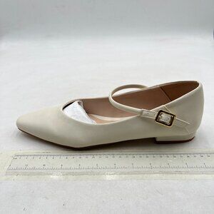 miss left Ivory Pointed Toe Mary Jane Ankle Strappy Low Chunky Heeled Comfy Dressy Party Work Shoes