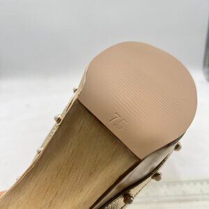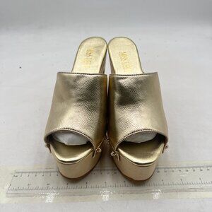 miss left Light Gold Platform Chunky High Heel Mules Open Toe Studded Sandals