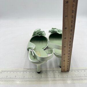miss left Light Green Flower Pointed Toe Satin Slingback Slip on Low Heel Pumps
