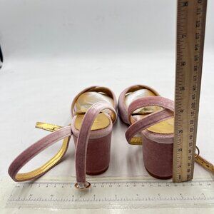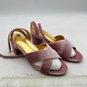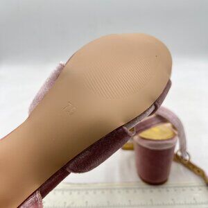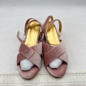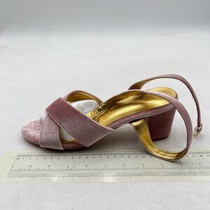 miss left Pink Velvet Open Toe Sandals Crossed Strap Buckles Block Heel Shoes