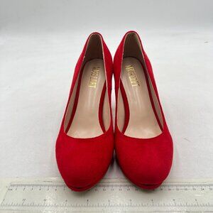 miss left Red Low Platform Chunky High Heel Slip On Closed Round Toe Pump