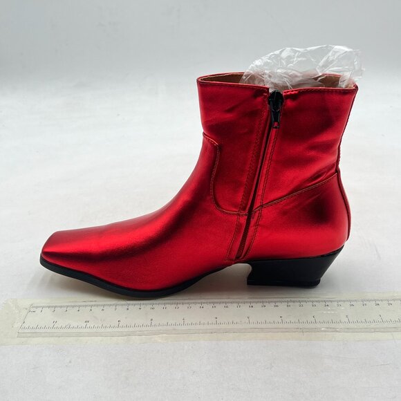 miss left Red Square Toe Low Chunky Heel Ankle Booties Chic Zip up Short Boot Trendy Office Casual Walking Shoes