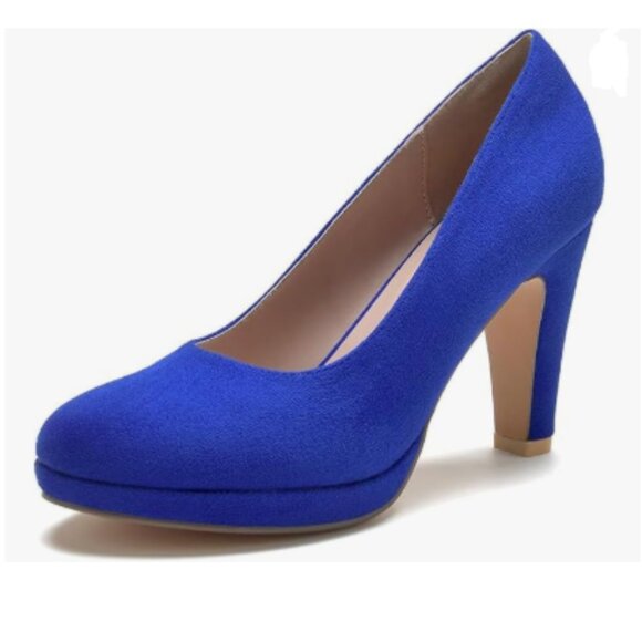 miss left Royal Blue Low Platform Chunky High Heel Slip On Closed Round Toe Pump Elegant Party Work Dressy Shoes