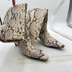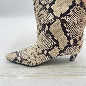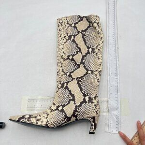 miss left Snakeskin Stretchy Knee High Boot Square Toe Low Kitten Heel Shoes