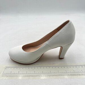 miss left White Low Platform Chunky High Heel Slip On Round Toe Pump Work Shoes