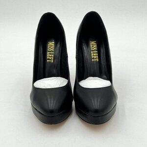 miss left Women's Low Platform High Chunky Heeled Slip On Closed Round Toe Pump
