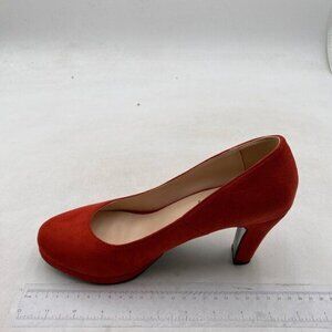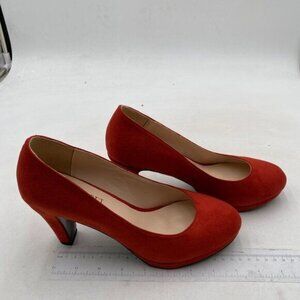 miss left Women's Low Platform High Chunky Heels Slip On Closed Round Toe Red