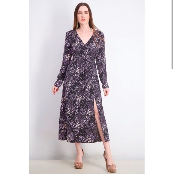 missguided slit dress ( floral, multicolored purple black ) size 4