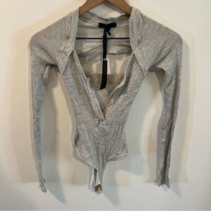 *missing buttons* NWT H:ours Henley Bodysuit in Heather Gray | Size XXS