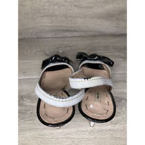 miu miu Great Labels White Patent Black Bow Peep Slingback Heels Women Sz 37EU/6