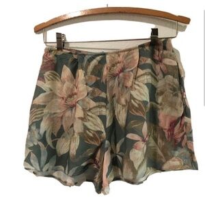 High waisted short featuring a vibrant all-over petal pine print and smooth pleat detail. Side welt pockets. Hidden zipper in back.