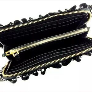 6 Popular Sale Miu Miu miu miu purse Wallet Zip Around Ladies' Ribbon Frill Black Gold Enamel Leather [Used] T7067 [10] New and unused items