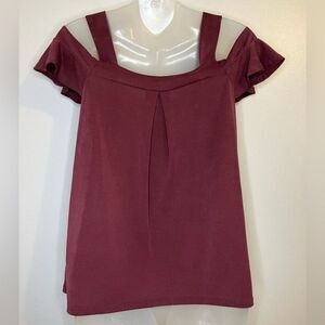 mm mm mm Burgundy Cold Shoulder Short Sleeve Top Size Small