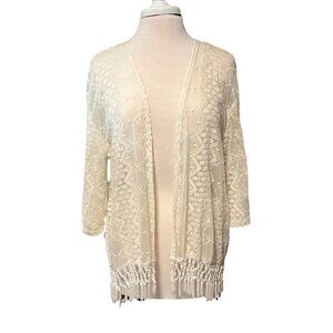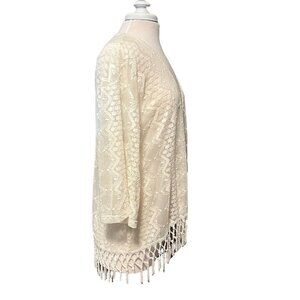 mm mm mm Cream Color Embroidered With Hem Fringes Open Blouse Size L (K10237)