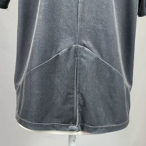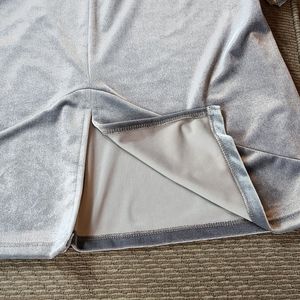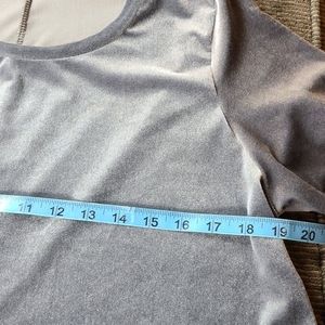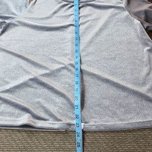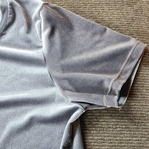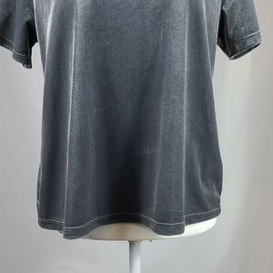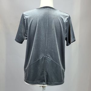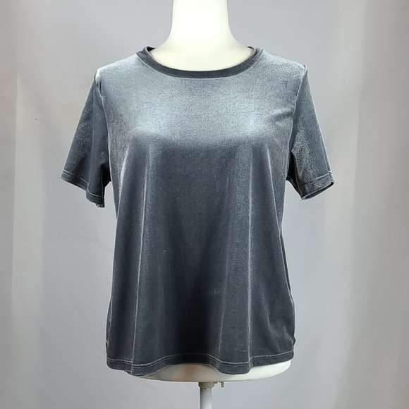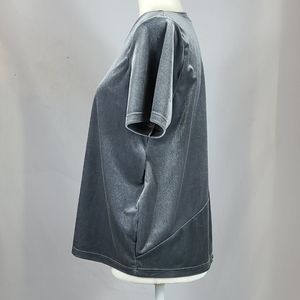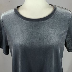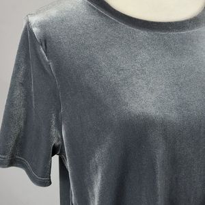 Short Sleeve, Scoop Neck Grey Velvet Top, Has Split in Back, Straight Hem, No Fabric Tag.