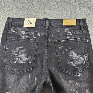 mnml Jeans Men 36 Black X143 Stretch Denim Distressed Slim Fit Pants Punk Skater