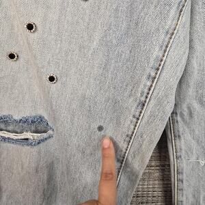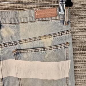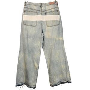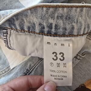 mnml Jeans Womens 33 Light Wash Distressed Grommet Raw Hem Button Fly Wide Leg