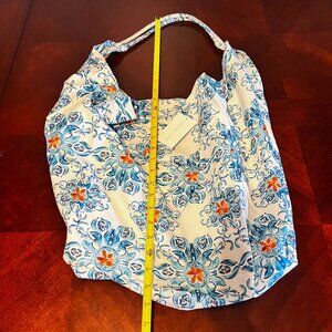 keywords: floral tote bag, canvas tote, blue floral bag, white tote bag, modaposa tote, shoulder bag, everyday tote, shopping bag, lightweight tote, durable bag, stylish tote, orange accents, spacious tote